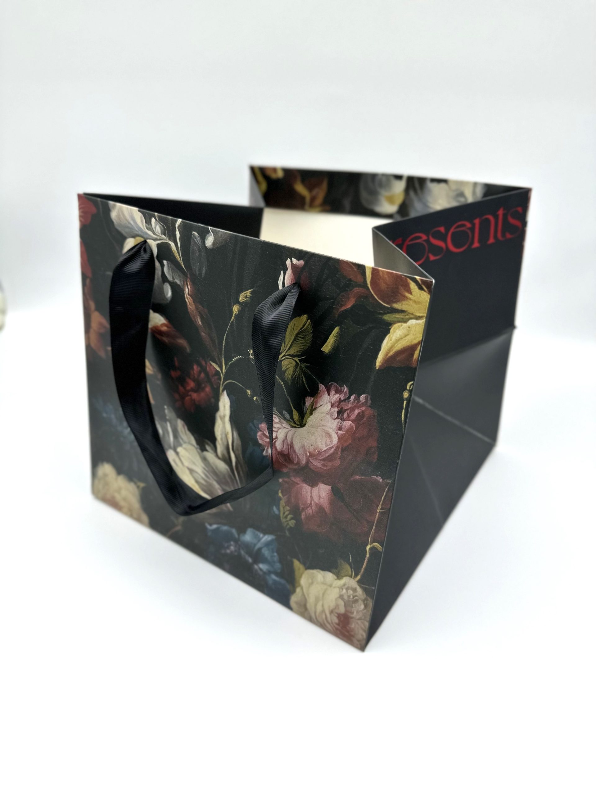 Сумка подарочная “Цветы” (картон), 2шт/уп., 26x26xH24 см, черный