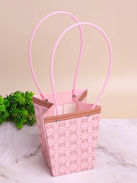 Сумочка для цветов трапеция H15,5х13х9,5см монограмма розовый
