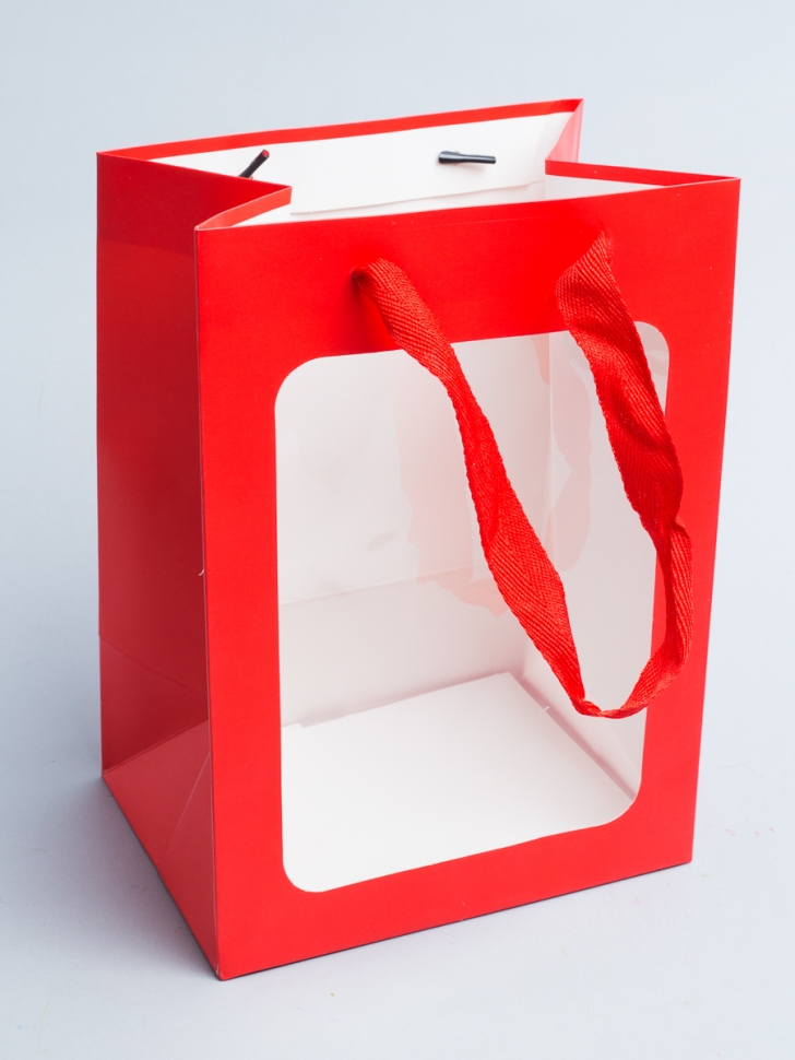 Количество товара Сумочка крафт с прозрачным окном 25х18х13см красный