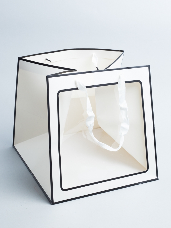 / Сумочка крафт с прозрачным окном 30х30х30см, белый с черным