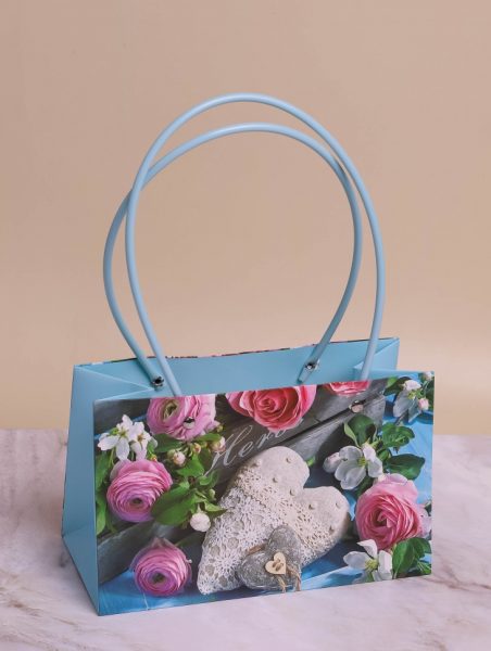 Сумочка пластик для цветов 22х10,5х13,5см 779 сердце с цветами