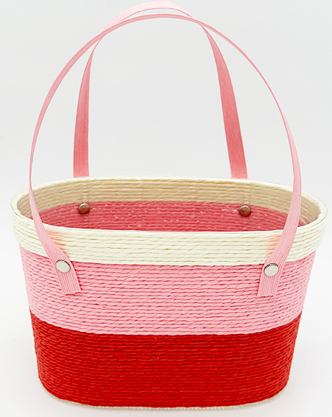 Сумочка плетеная из бумажной лозы верх 23*13 см, низ 20*9 см, высота 14 см молочный/розовый/красный