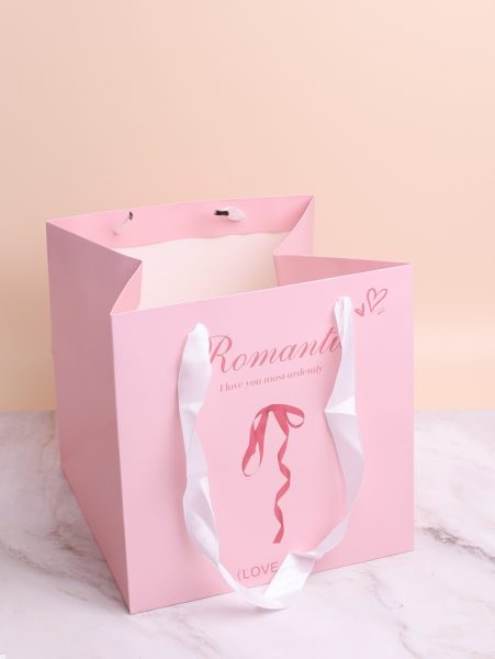 / Сумочка подарочная 2ШТ. 25х25×25см с бантом розовый