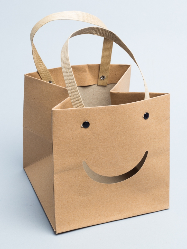 Количество товара Сумочка подарочная крафт 15х15х15см смайлик крафт