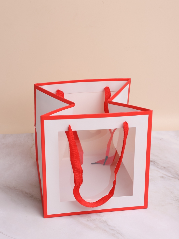 Сумочка подарочная с прозрачным окном 20х20х20см кант красный