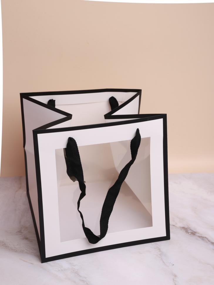 Сумочка подарочная с прозрачным окном 25х25х25см кант черный
