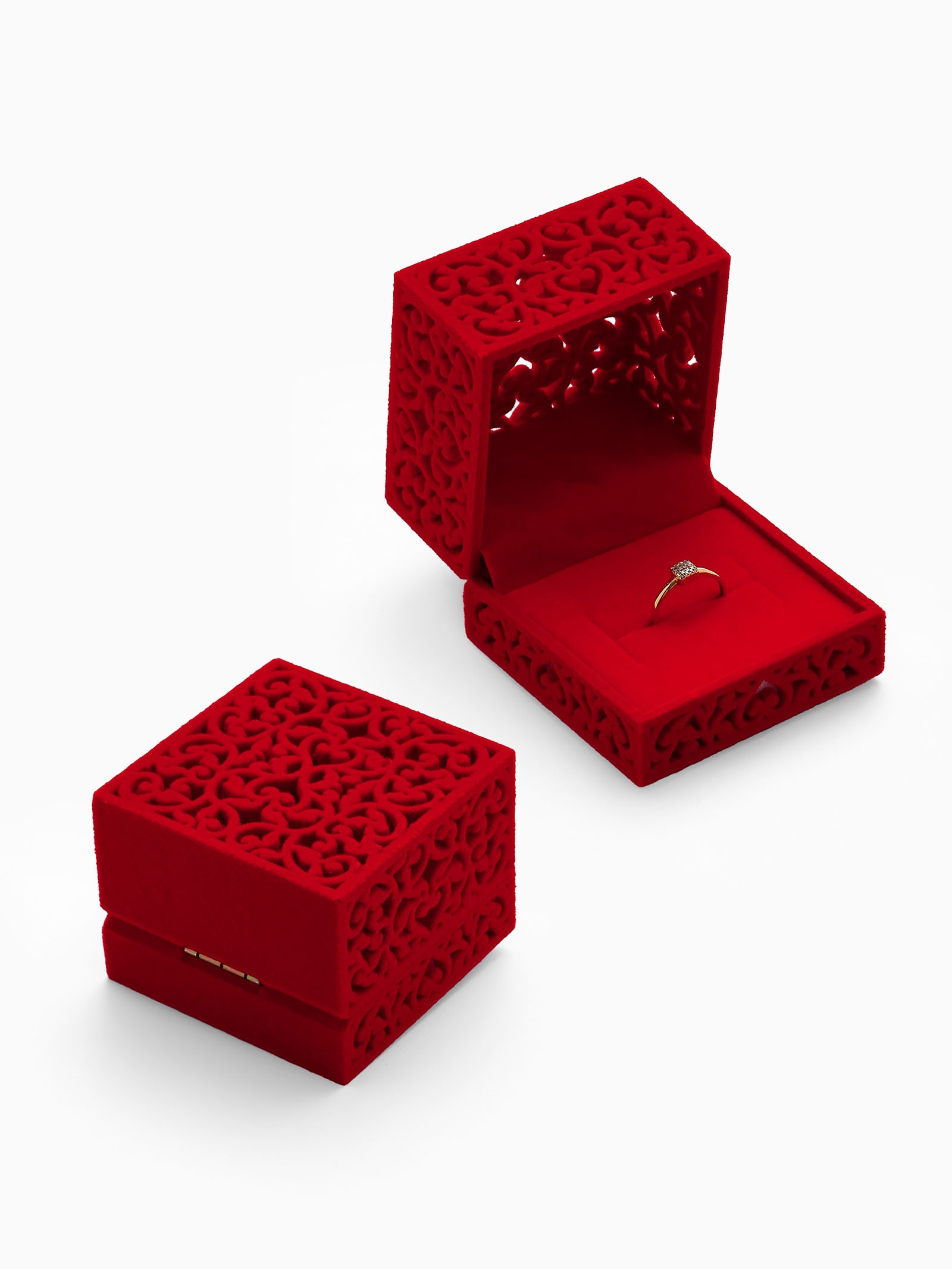 Количество товара Футляр под кольцо, серьги «Кружево», бархатный, 6×6 см, красный
