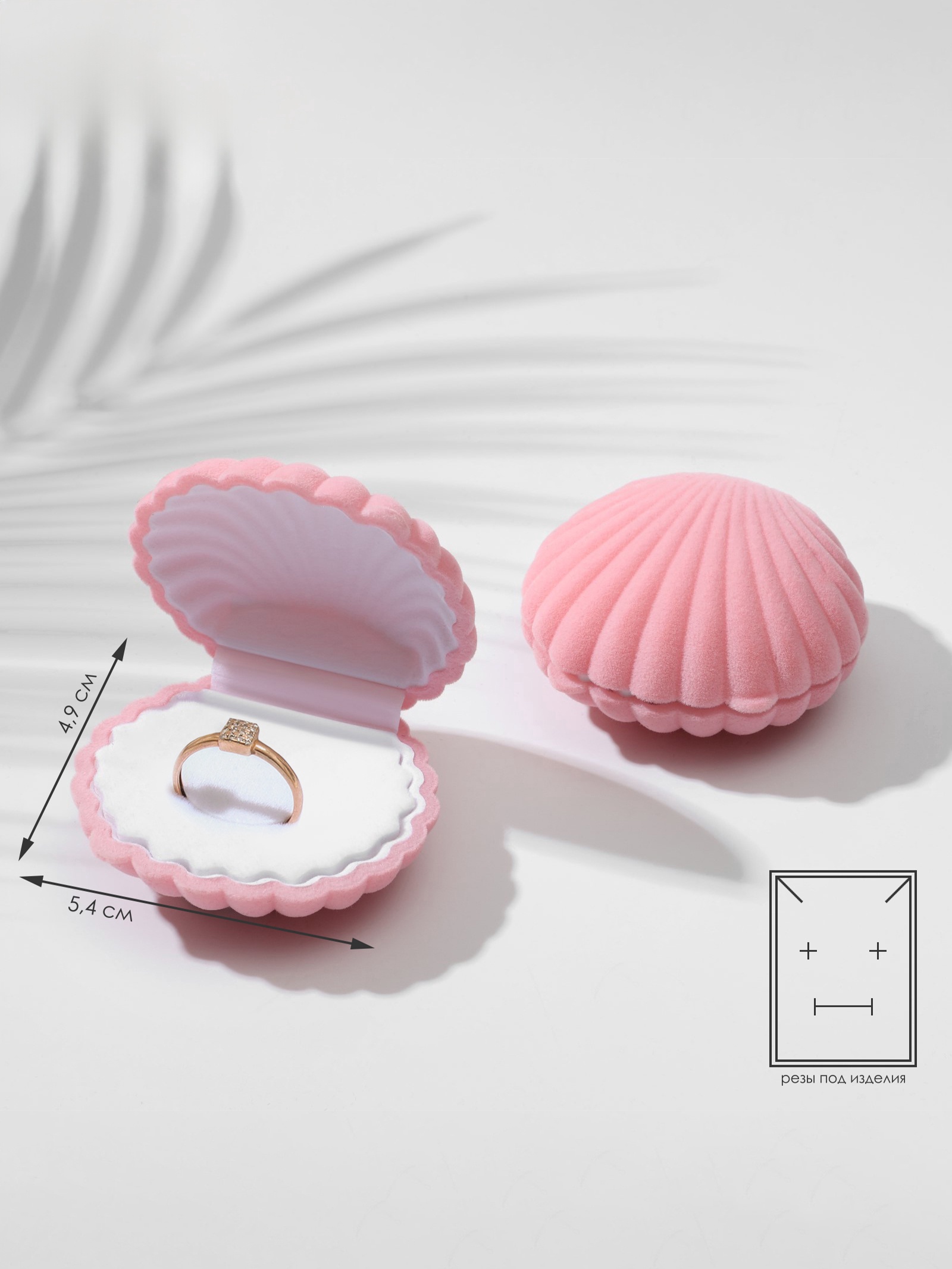Футляр под серьги, кулон «Ракушка», 6×5.5 см, бархатный, розовый