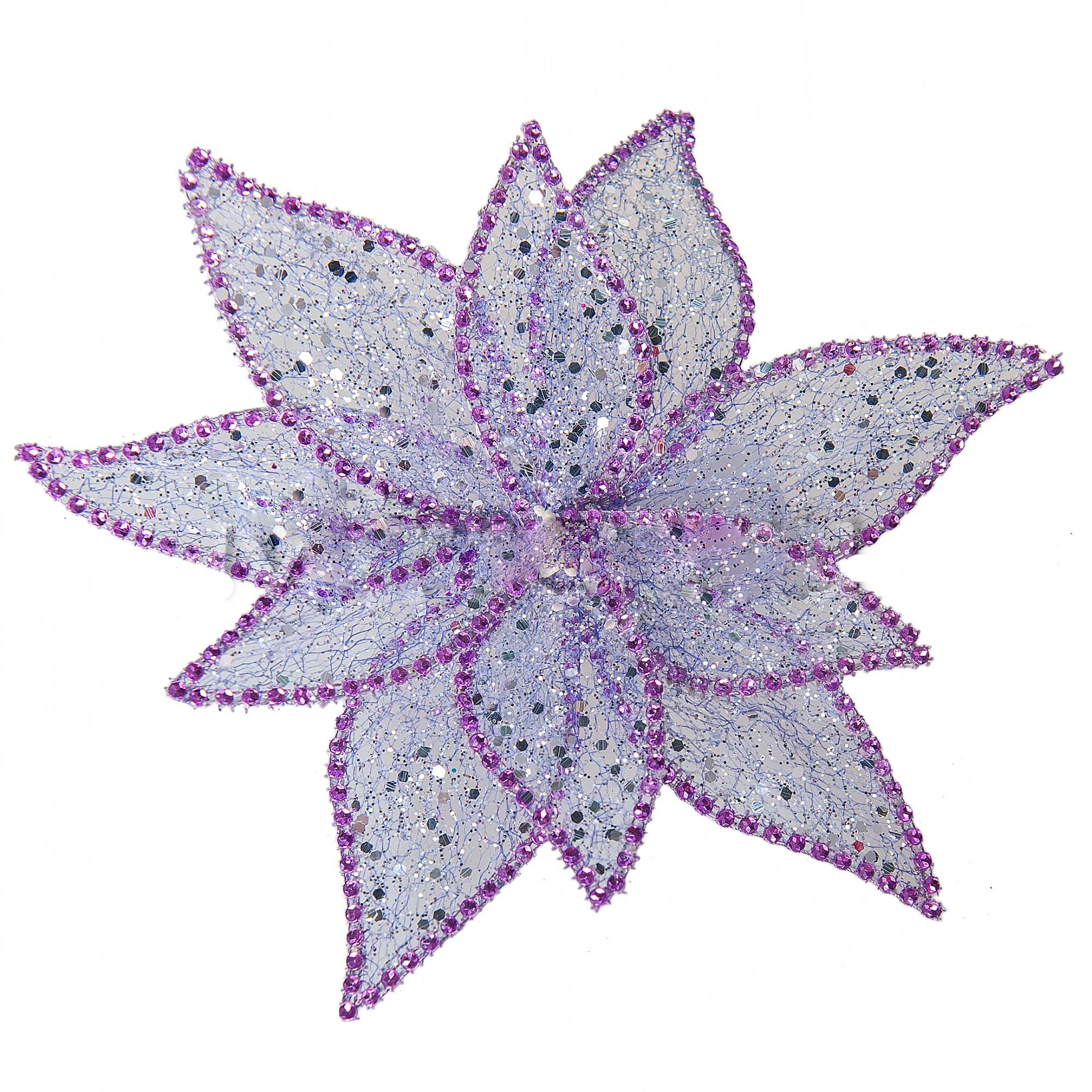 Цветок искусст. Хрустальная Пуансетия на клипсе (органза), 20см, лиловый