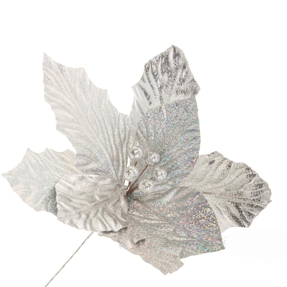 Ветка декоративная с цветочками и звездочками, 18 см, 1 шт., серебро