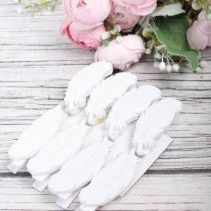 Прищепка с листиками 4,5 см белые по 8 шт CAR16