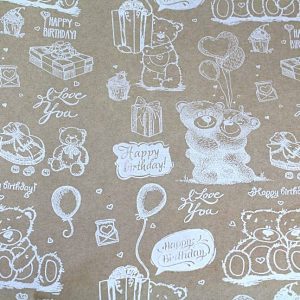 Крафт бумага “Мишки” белый цв. на коричневом фоне 70 см* 8,5 ярд ± 5%
