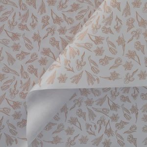 Крафт бумага “Ирисы” золотой цв. на белом мелованном фоне 720мм/60гр/10м± 5%