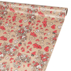 Крафт бумага “Я люблю тебя” черный/красный цв. на белом фоне 680мм/60гр/10м± 5%