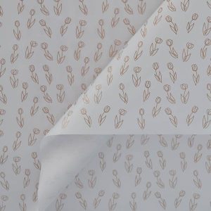 Крафт бумага “Тюльпаны” золотой цв. на белом мелованном фоне 720мм/60гр/10м± 5%