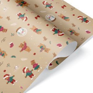 Упаковочная бумага 80гр (0,7*1 м) Новогодние мишки, 10 шт.