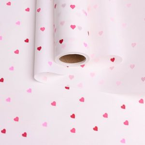 Бумага белая крафт 50г/м2, 70см x 10м Сердечки конфетти, счастье