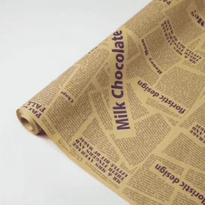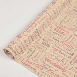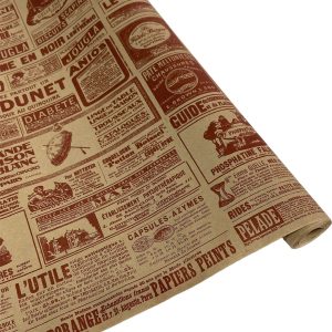 Флористическая крафт бумага “Винтажная газета”, 70 см x 10 ярд, бурый / бордовый