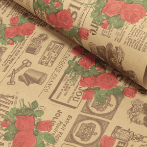 Флористическая крафт бумага “Кутюрье”, 70 см x 10 ярд, белый / коричневый-красный-зеленый