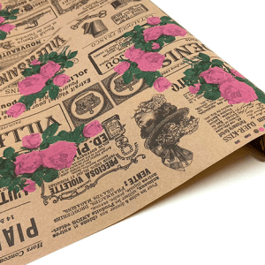 Флористическая крафт бумага “Кутюрье”, 70 см x 10 ярд, бурый / коричневый-красный-зеленый