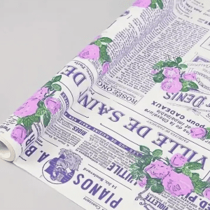 Флористическая крафт бумага “Кутюрье”, 70 см x 10 ярд, белый / фиолетовый-сиреневый-зеленый