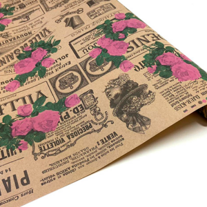 Флористическая крафт бумага “Кутюрье”, 70 см x 10 ярд, бурый / черный-малина-зеленый