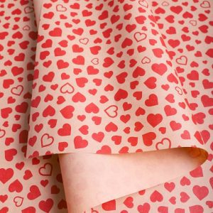 Бумага крафт 78/м2, 100×70см, 10лист Сердца крафт на красном
