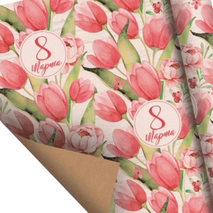 Бумага упаковочная крафтовая «Тюльпаны на 8 марта», 50 х 70 см