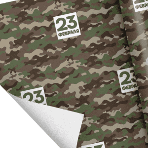 Бумага упаковочная крафтовая белая «23 февраля хаки», 50 x 70 см