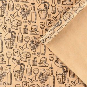 Бумага упаковочная крафтовая «Вино и сыр», 50 х 70 см