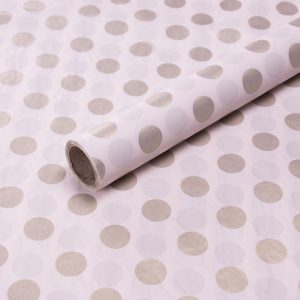 Упак. материал “Тишью в горошек”, 58см*10м., светло-бежевый/золото