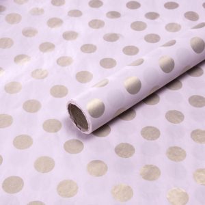 Упак. материал “Тишью в горошек”, 58см*10м., светло-розовый/золото