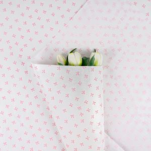 Бумага тишью с принтом “Бантики” 49*67см Розовые на белом-05 20 листов 35гр
