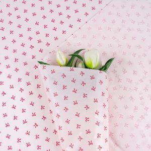 Бумага тишью с принтом “Бантики” 49*67см Красные на розовом-03 20 листов 35гр