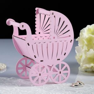 Кашпо МДФ “Коляска” малая , розовый пастель 14,5*8,5*18,5см