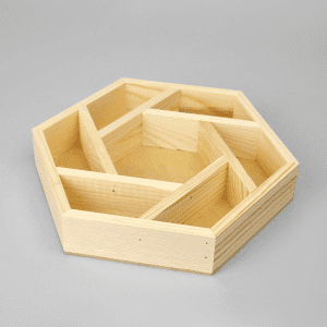 Ящик дерево Шестигранник с перегородками, малый 28х24,5хH4,5см, без покраски
