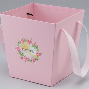 Коробка под цветы с окном 19x19x22 см./14*14 см., 1 шт., розовый