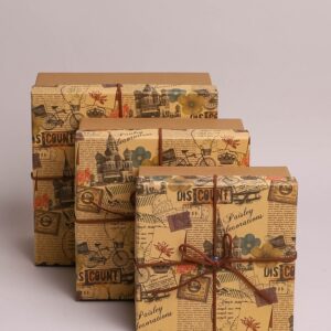 Коробка квадрат набор из 3шт 19х19х9см Винтажное очарование крафт