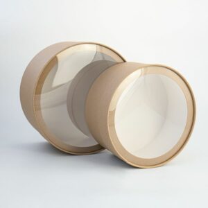 Набор коробок 2в1 шайба H15хD30 / H13хD25см, с окошком, завальц.край, крафт