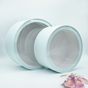 Набор коробок 2в1 шайба H15хD30 / H13хD25см, с окошком, завальц.край, сливочный