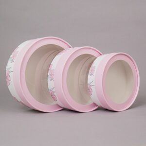 Набор коробок 3в1 шайба H7хD21 / H6хD18 / H5хD16см, с окошком, завальц.край, Нежные цветы