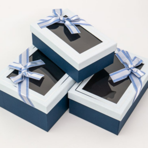 Набор коробок 3в1 прямоугольник 23x16x9,5 / 21х14х8 / 19х12х6,5см, с бантом, окном, синий
