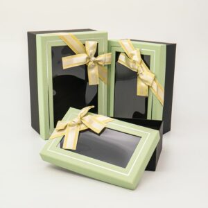 Набор коробок 3в1 прямоугольник 23x16x9,5 / 21х14х8 / 19х12х6,5см, с бантом, окном, зеленый