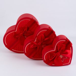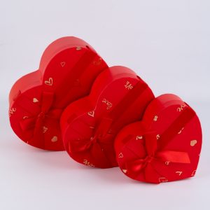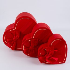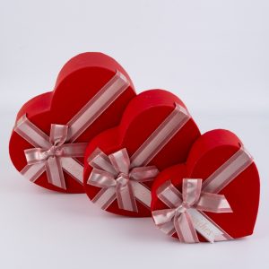 Коробка Сердце набор из 3шт 22х20х9см двухцветный с бантом красный /белый
