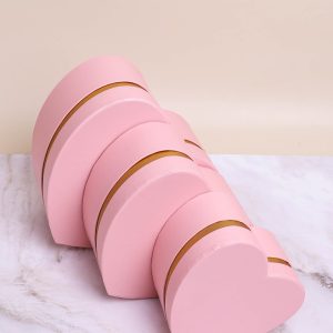 Коробка Сердце набор из 3шт 20х18,5х9,5см с золотой полосой розовый