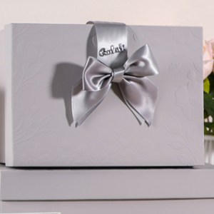 Набор коробок подарочных с бантиком 33,5*25*11,5, 29*21*9, 24,5*17*6,5, 3 шт., св.серый