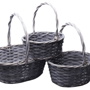 Набор корзин плетеных (ива), 38х30хH14/35см, 33x25xH12.5/30см, 28x20xH11/25см, 3 шт., серый овал