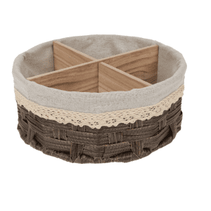 Кашпо плетеное для хранения (пластик), D25хН10 см, (H-10см, D-25см, Бежевый-серый)