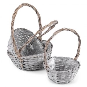 Набор плетеных корзин (ива), D34x24,5/H18/HH49 B25x17,5 S:D28*20 H15/HH45 B21x13,5, 2 шт., натур