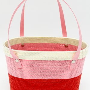 Сумочка плетеная из бумажной лозы верх 23*13 см, низ 20*9 см, высота 14 см молочный/розовый/красный
